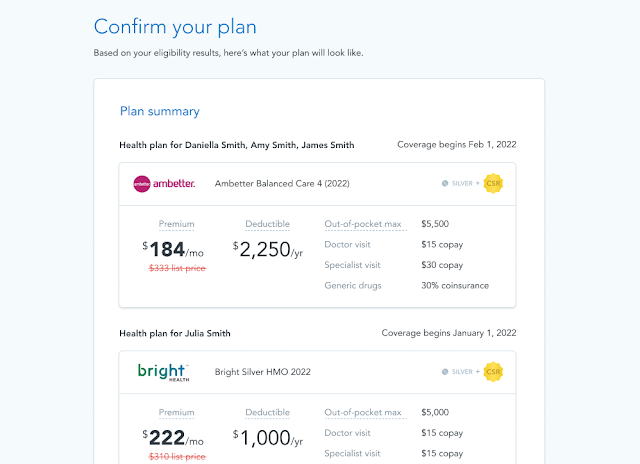 If particular applicants don’t use all of their subsidy, that overflow subsidy is applied to other applicants. This overflow subsidy is only visible once you get to the Confirm Plans page – it’s not visible during shopping.